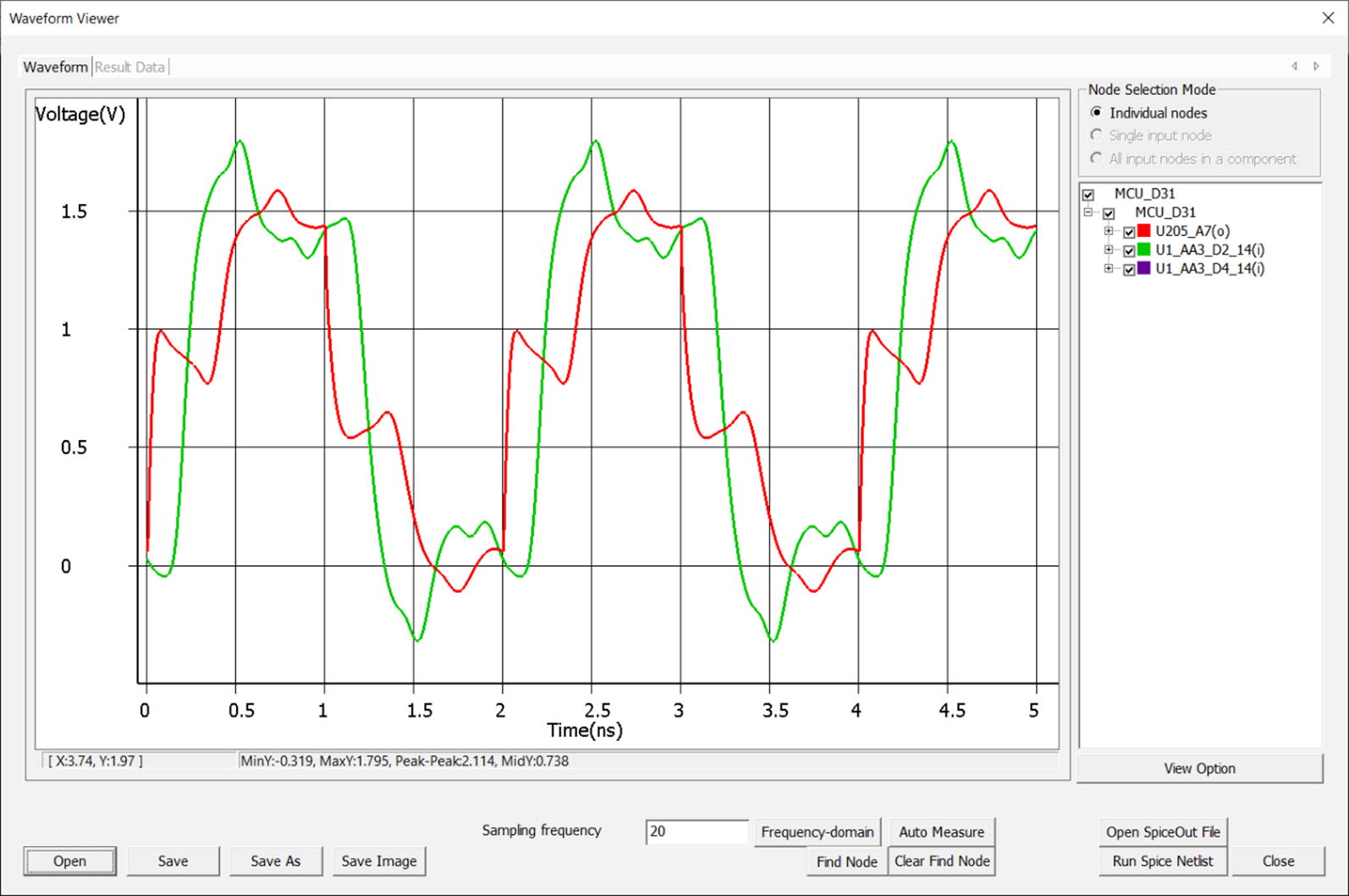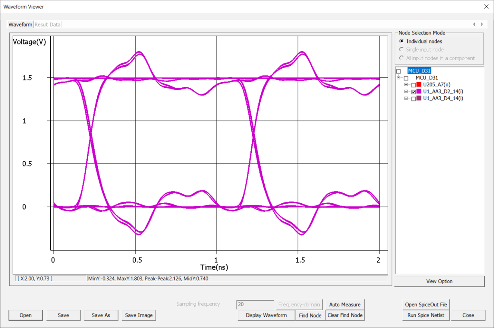 The following is the waveform result of the T-branch line with the MCP model applied, as described in the Features and Menu Description earlier.