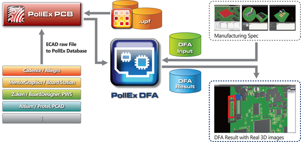 PollEx DFA is an assembly status checking toolset for PCB design based on 3D package library.