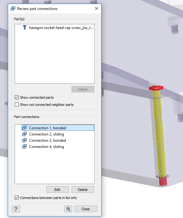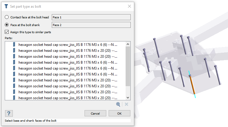 系统将自动为设置为螺栓的所有零件及其相邻零件创建连接。