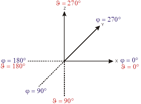 Figure 1 shows the coordinate system used in WinProp for the 3D display of antenna patterns. The main direction of radiation is = 0° and = 0°.