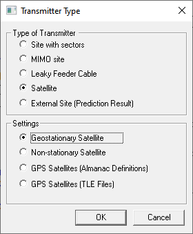 Figure 1. The Transmitter type dialog set to Geostationary Satellite.