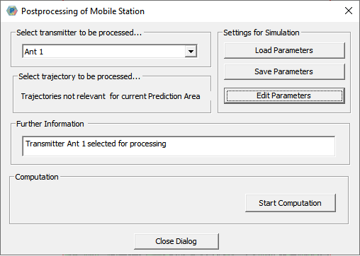 Once everything has been specified, click Start Computation to return to the Post Processing of Mobile Station dialog, see Figure 1.