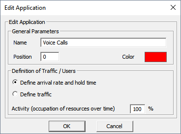 - Either arrival rate in 1/sec/m² and hold time in sec or traffic in Erlang/m² can be defined.