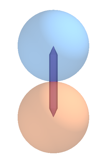 Below is an image of a 3-sphere particle shape. Four particles are placed on top of each other. The base and top particles have a coordination number of 3 as each particle is in contact with 3-spheres of the middle particles. The middle two particles have a coordination number of 6 as they are in contact with 3 spheres of the particle above and 3 spheres of the particle below.