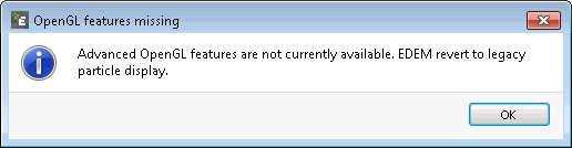 If ‘legacy particle display’ is selected then EDEM is not using the processing machines graphics card effectively to display the particles, when using Remote Desktop the following message will be displayed if this option is not disabled: