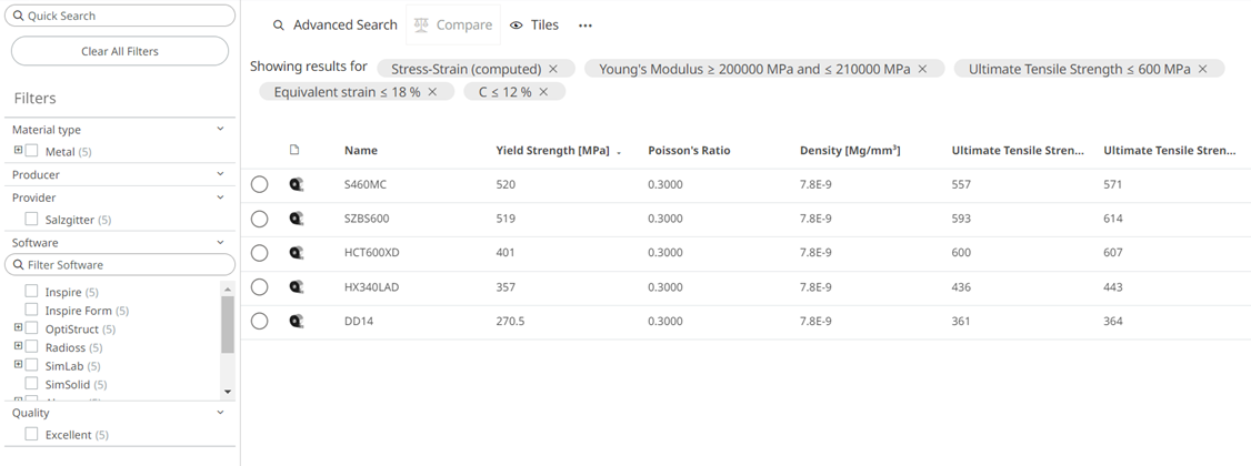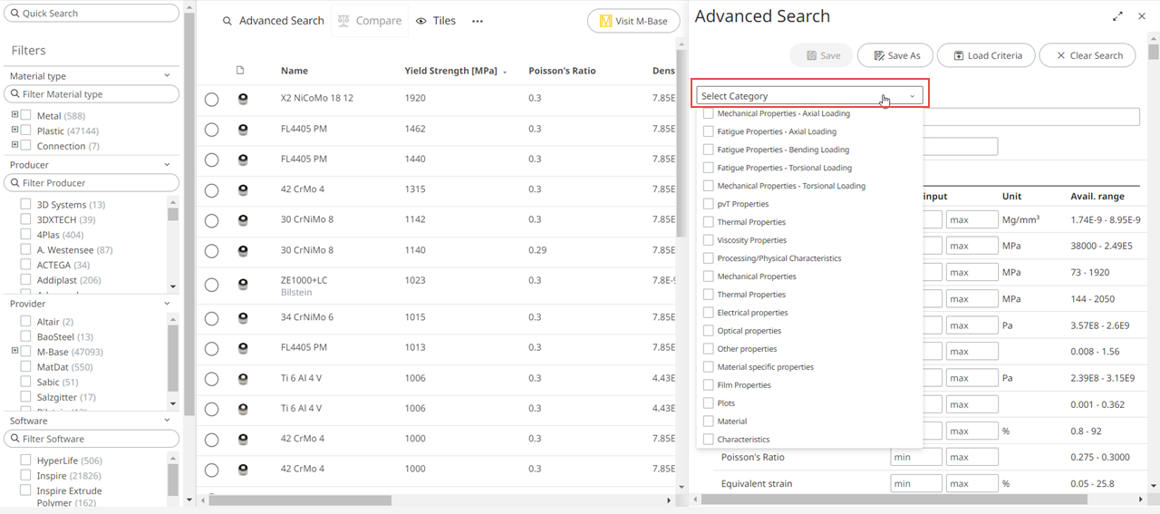 Premium Access to AMDC allows you to leverage advanced search using multiple search criteria, compare materials, and