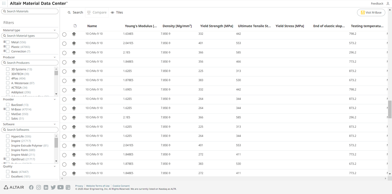 By default, when a user logs in, the materials are displayed in tiles view as individual cards.