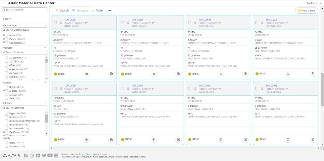 You can change the view of the materials to the table (