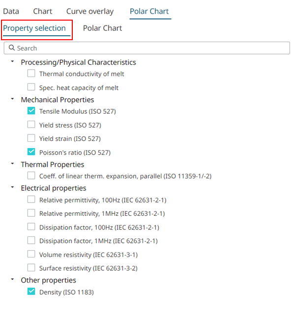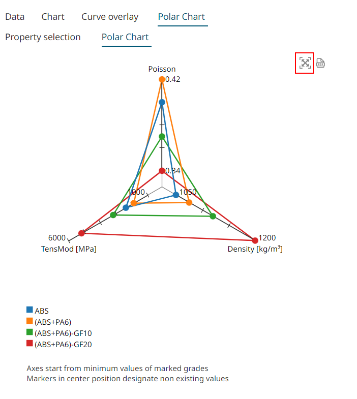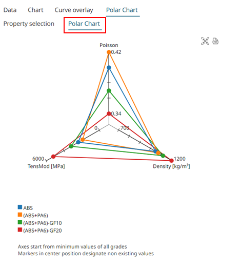 The Polar chart is displayed. Each material property is displayed as axes with the axes value starts from minimum values to all grades.