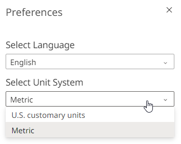 AMDC currently supports English and German languages and Metric and U.S. Customary units as unit systems.