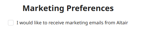 Select the check box, to change the preference of receiving marketing emails from Altair.