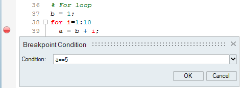 2. Type a == 5 and click OK.