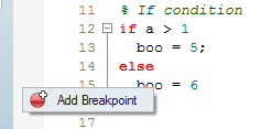 2. Click the Breakpoints tab, located next to the Call Stack tab at the bottom of the GUI. Or, from the Debug menu, select Windows > Breakpoints.
