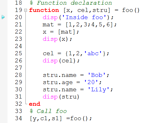 7. After running line 29, you can view the stru fields by clicking the '+' in front of this struct in Variable Browser. The struct is now expanded and you can see its content.