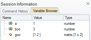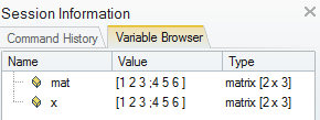 2. Under the Value column in the Variable Browser, notice the values for mat and x: