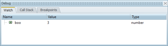 3. Click the Step Over icon, . The value of boo has changed. This can be verified by the value of boo in the Variable Browser or by inspecting the value in the Watch window.