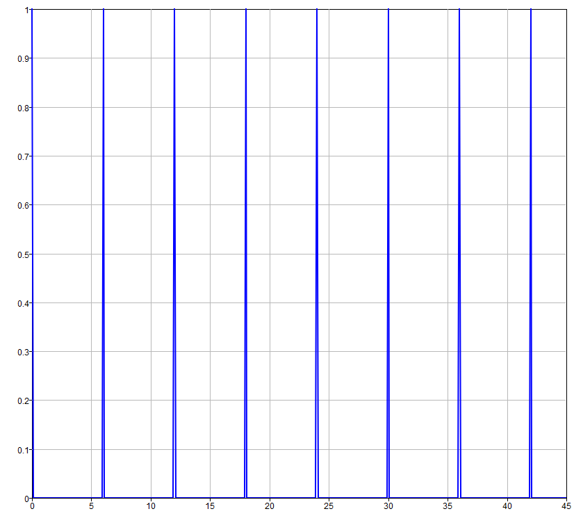 [u, t] = gensig('pulse', 6, 45, 0.1);