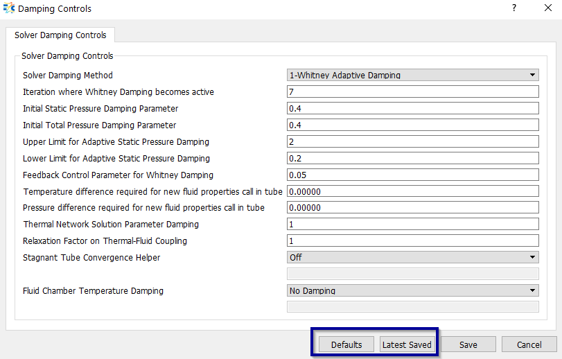 “Defaults” & “Last Saved” options have been added to Solver Convergence & Solver Damping panels