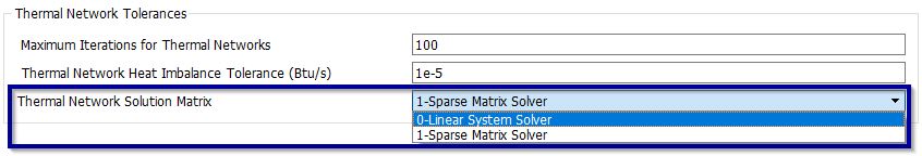 Sparse Matrix Solver has been introduced for Thermal Network solution. This will speed up the solution time for thermal network models. ~35% reduction in solution time is achieved in comparison to current Linear solver. With the new Sparse Matrix Solver, Flow Simulator solver capability is enhanced to solve ~300000 thermal nodes in the model. The Sparse Matrix solver options is available under Solution Panel → Solvers Convergence → Thermal Network tolerances → Thermal Network Solution Matrix
