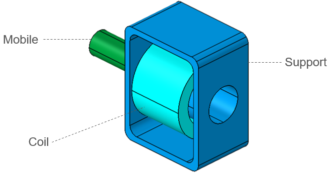 The studied device is obtained from an import, it is a linear actuator with a coil, a mobile and a fixed part. |