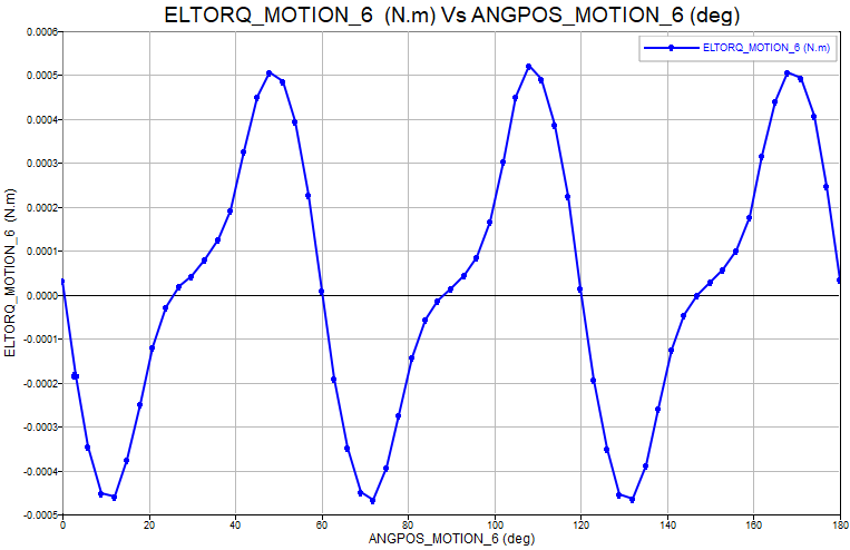 In this study rotor takes different static positions; the material used for the frame and the rotor is stainless steel with nonlinear B(H) characteristic. The cogging torque is plot below: