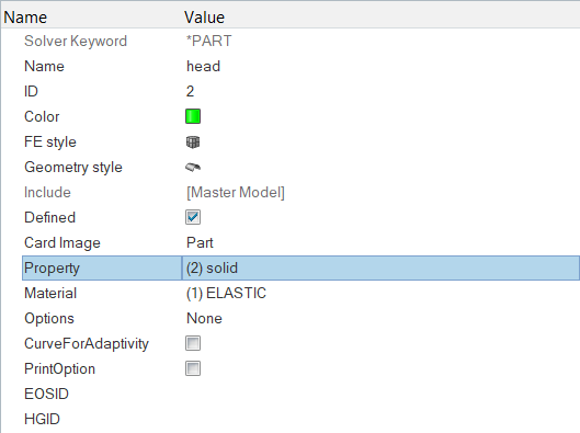 In this step, you will define *SECTION_SOLID for the head of the model.