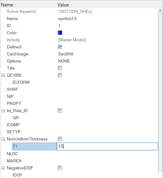 In this step, you will define a property with a 3.5 mm thickness for the A-pillar.