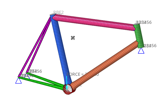 Figure 5. - In the modeling window, select the blue seat_tube property and the orange down_tube property.