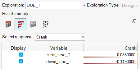 Figure 18.Note: This can be quite useful when dealing with a larger number of design variables.In the table as well as on the model, positive effects – indicating a positive relationship between the design variable and response – are shown in shades of blue, whereas negative effects – indicating an inverse relationship between the design variable and response – are shown in shades of brown.