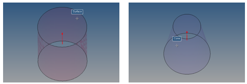 図 2. 直線のエッジを使用したベクトル(+ve)、直線のエッジを使用したベクトル(-ve) - 円筒サーフェスまたは円錐サーフェスの軸