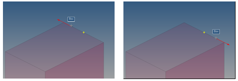 - ベクトルが希望する方向(矢印の頭に示される)に揃うよう、グラフィックエンティティに沿ってカーソルを合わせます。ベクトルの方向は、エッジまたはサーフェスの端点に向かうカーソルの位置のバイアスによって決定されます。