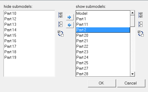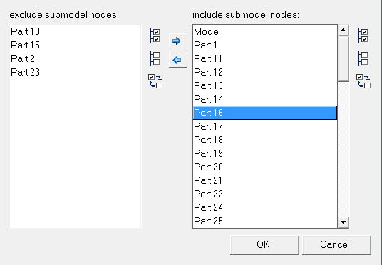 Filter Submodelsダイアログが表示され、様々なサブモデル / コンポーネントを表示または非表示にできます。![]() 図 11. 荷重ステップのリストからアイテムを選択するには、マウスまたは矢印キーを使用します。ツリー構造から複数のサブモデルを選択するには、CtrlキーとShiftキーを使用します。 目的のサブモデルを追加または削除するには、Add Selected Path Contributorsボタン Select All |