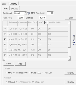 | MAC Sensitivity | 特定の節点の組み合わせについてCOMACコンターをプロットします。 | ||