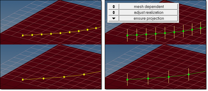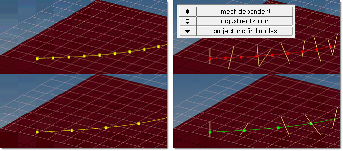 - リアライゼーションの最低条件は、法線投影可能なことです。リアライゼーションは、1つのプロジェクションポイントから次に向かう方向に実行されます。プロジェクションポイントがシェルの節点と一致する場合、それらは重複節点として整合されます。