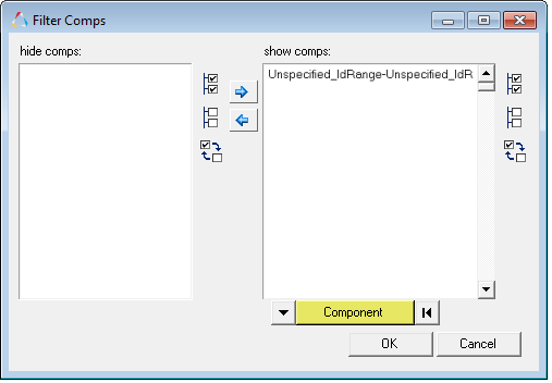 - 画面で非表示にするコンポーネントのリストです。コンポーネントはhide compsリストからshow compsリストに移動できます。これを行うには、リストで1つまたは複数のコンポーネントを選択し、右向き矢印