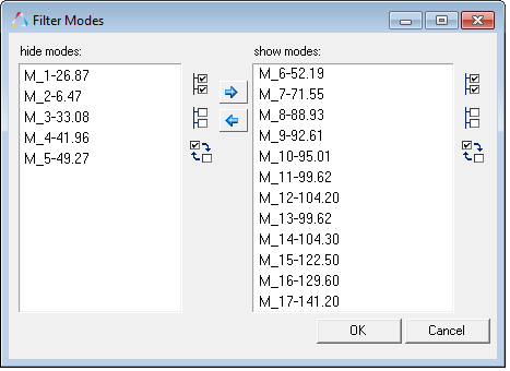 - ビューで非表示にするモードのリストです。モードはhide modesリストからshow modesリストに移動できます。これを行うには、リストで1つまたは複数のモードを選択し、右向き矢印