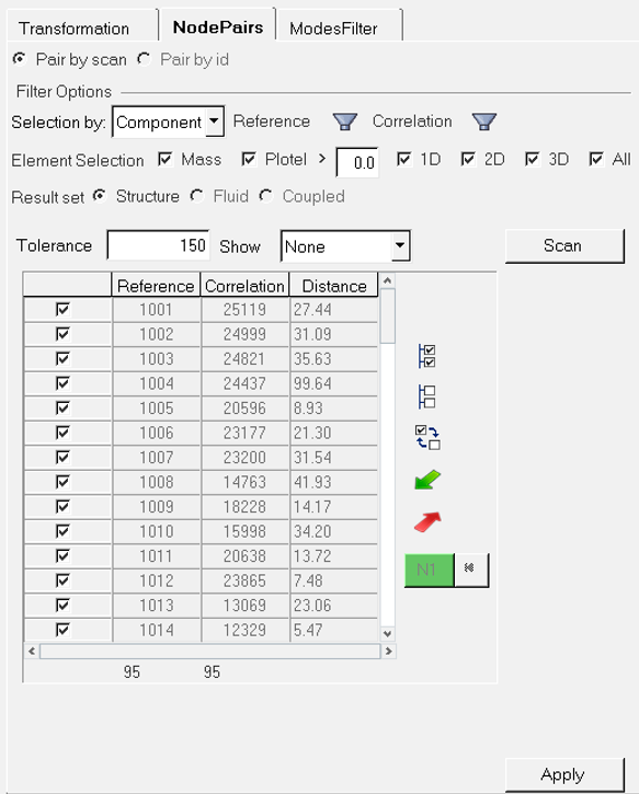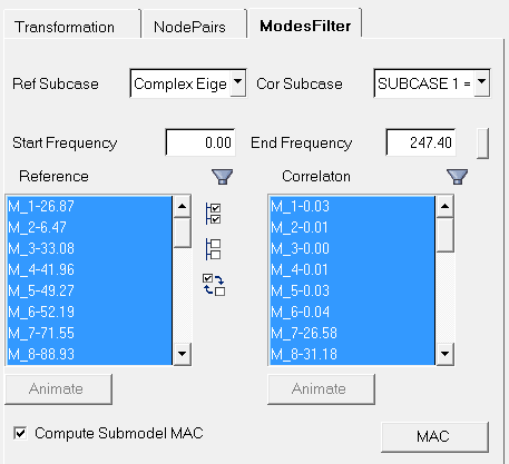 - 参照モデルと相関モデルの節点の組み合わせを決定したら、Applyをクリックします。ユーティリティのModesFilterタブが自動的に表示されます。