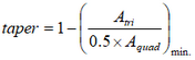 Taper ratio for quadrilateral elements is defined by first finding the area of the triangle formed at each corner grid point: