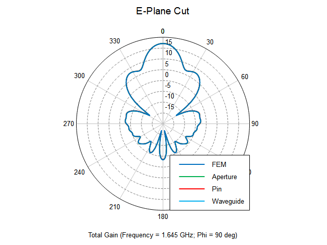要求したE平面放射パターンの利得(dB単位)を極座標グラフ上で比較します。