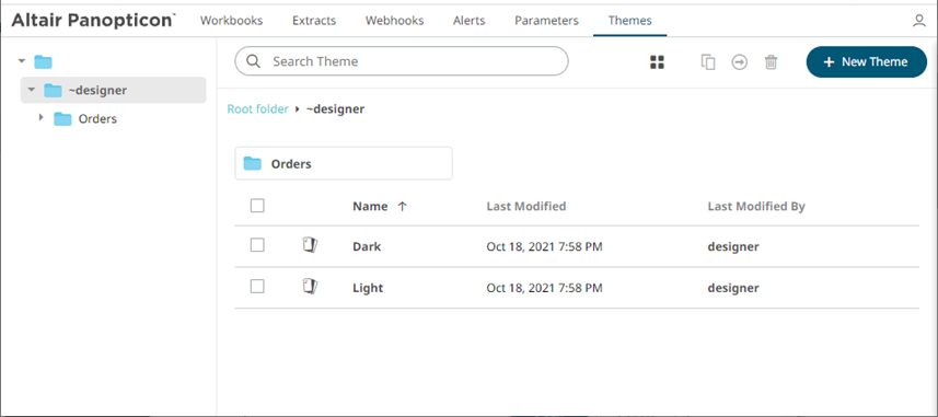 Users with a Designer role are allowed to copy themes to another folder or subfolder where they have permission.