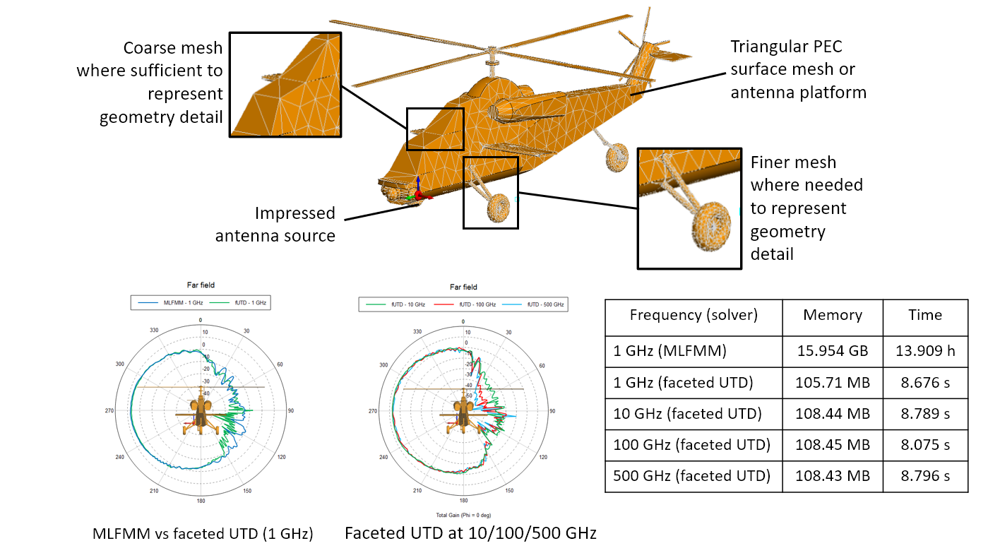 Figure 3. New faceted UTD solver added to Feko for frequency-independent antenna placement analysis.
