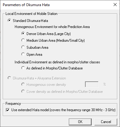 Figure 2. The Parameters of Okumura Hata dialog.